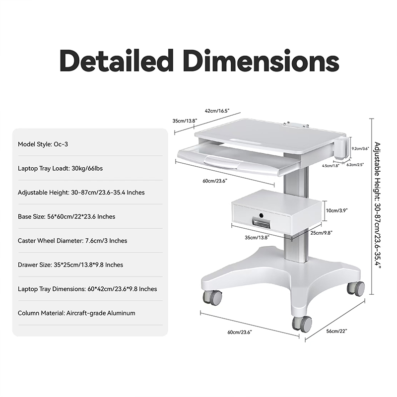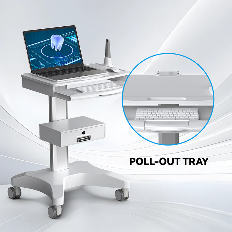 تُعدّ عربة الترولي الطبية متعددة الاستخدامات هذه نقلة نوعية في عيادات الأسنان وصالونات التجميل بالمستشفيات، فهي مصممة لتعزيز كفاءة سير العمل. تتميز بدرج مخصص للكمبيوتر المحمول لحفظ السجلات الرقمية أو تشغيل البرامج بسلاسة، بالإضافة إلى حامل مخصص لماسح ضوئي فموي يحافظ على أمان معدات المسح باهظة الثمن وسهولة الوصول إليها، مما يُزيل الفوضى ويُقلل من مخاطر تلف الجهاز.
