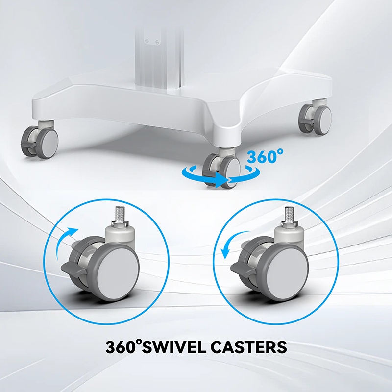 تتميز عربة ليكايمو للكمبيوتر المحمول بأربع بكرات دوارة بزاوية 360 درجة مع فرامل قدم، مما يوفر سهولة في المناورة والثبات. سواء كنت تنقل أدوات أو معدات، تتميز بعجلات دوارة سلسة لسهولة المناورة في العيادات أو المستشفيات أو صالونات التجميل. يضمن هيكلها المتين ثباتها أثناء الإجراءات، بينما توفر عجلاتها القابلة للقفل تثبيتًا آمنًا عند الحاجة.