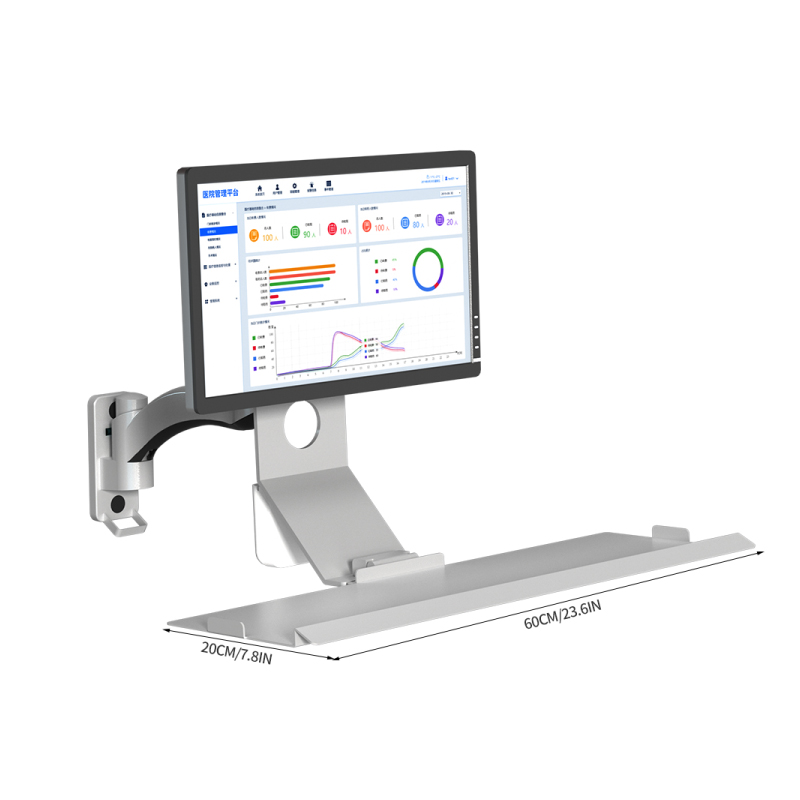 حامل ذراع أحادي المقطع مصنوع بالكامل من الألومنيوم مع صينية لوحة مفاتيح
