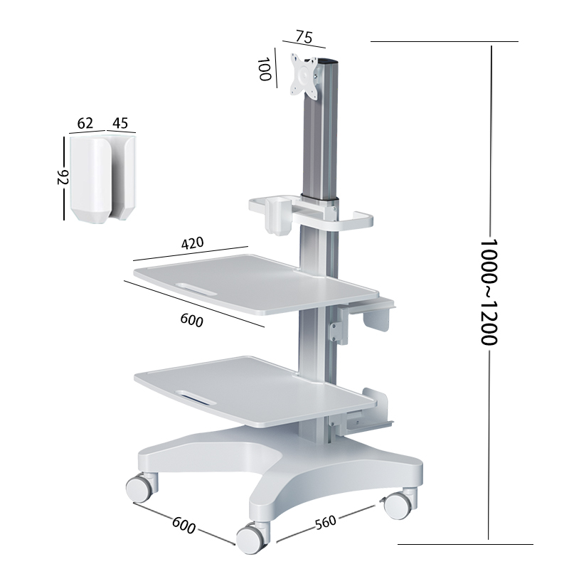 تُحسّن هذه العربة ذات الطبقتين، الموفرة للمساحة، سير العمل السريري بفضل هيكلها المصنوع من مادة ABS الطبية وارتفاعها المريح. يُثبّت الطبق العلوي أجهزة المسح الضوئي/الشاشات بأمان، بينما يُخزّن الرف السفلي الملحقات. تضمن العجلات القابلة للقفل الثبات أثناء الإجراءات، كما يُحافظ نظام إدارة الكابلات المدمج على الامتثال لمعايير التعقيم.