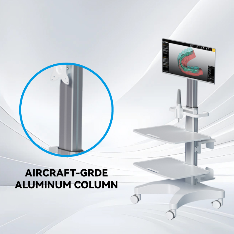 صُنع العمود من سبيكة ألومنيوم عالية القوة، ويتميز بنسبة قوة إلى وزن استثنائية، مما يضمن ثباته مع الحفاظ على قابلية الحركة. سطحه المؤكسد مقاوم للتآكل والتلف. يسمح هيكله المُشَكَّل بدقة بتعديل الارتفاع بسلاسة، كما يضمن نظام إدارة الكابلات المتكامل نظافة مساحة العمل، مما يعزز وظائف العربة وطول عمرها في البيئات السريرية.
