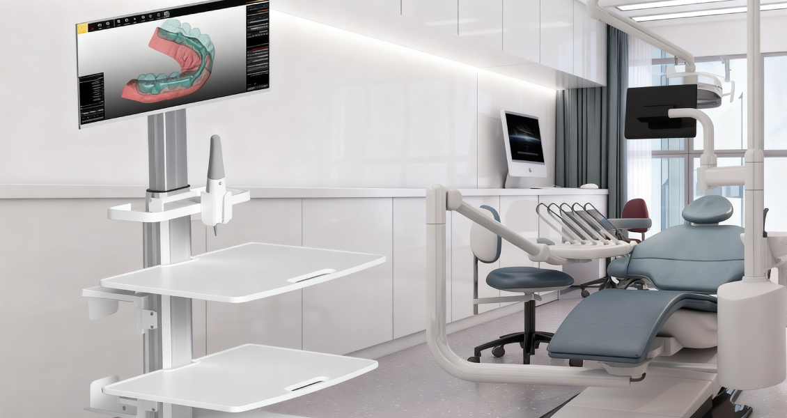 Erعربة محطة عمل الماسح الضوئي داخل الفم المريحة مع صواني ذات مستويين