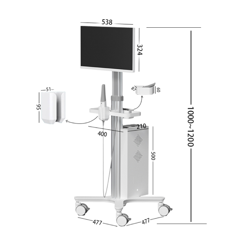 هذا نظام ماسح ضوئي متنقل متكامل لفحص الأسنان داخل الفم. يتميز بشاشة لمس عالية الدقة مثبتة على ذراع قابل للتعديل، وقطعة يدوية مدمجة للماسح الضوئي، وعربة متينة بعجلات قابلة للقفل لسهولة الحركة داخل العيادة، مما يُحسّن سير عمل الطبعة الرقمية.