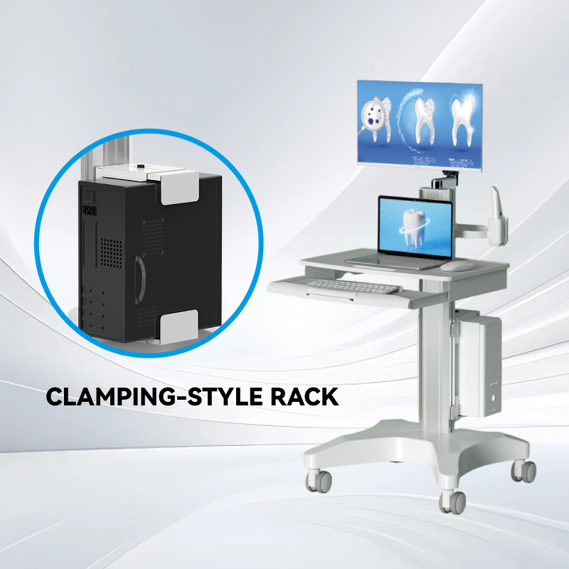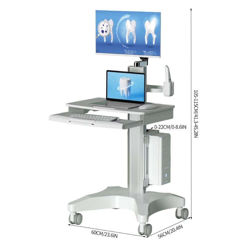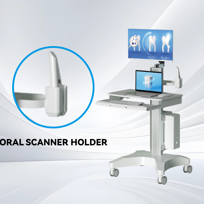 عربة حاسوبية طبية مزودة بلوحة مفاتيح منزلقة وحامل ماسح ضوئي فموي