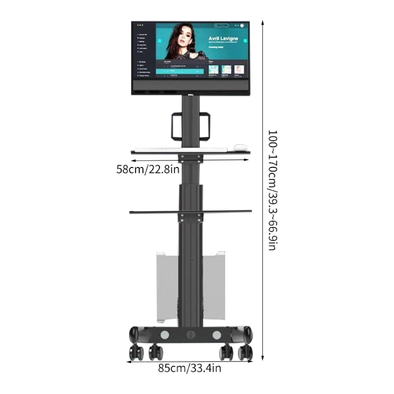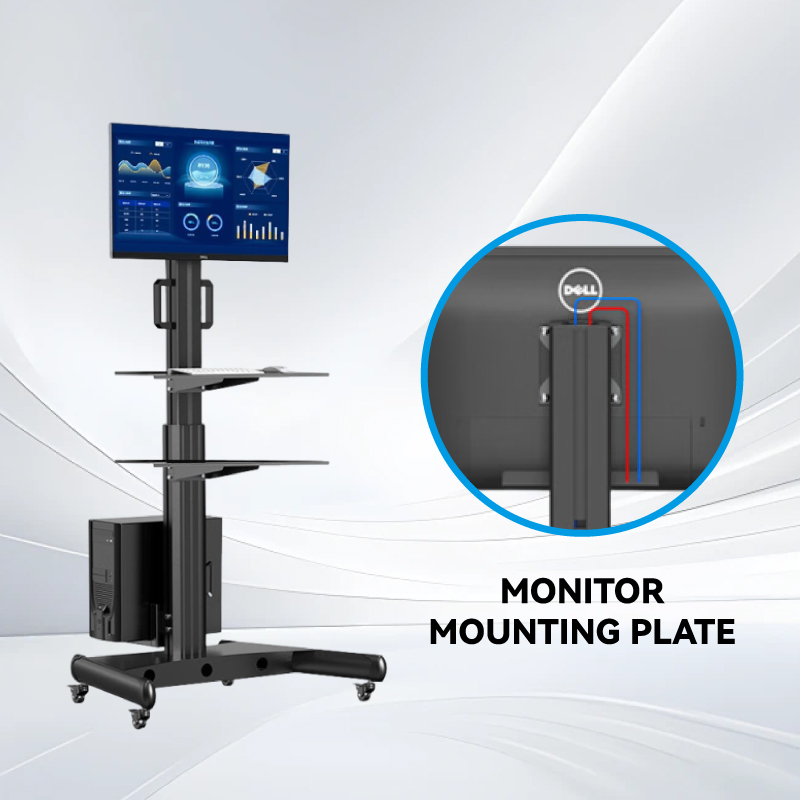 تتميز هذه العربة الطبية بعمود قابل لتعديل الارتفاع، يدعم شاشة رقمية لمراقبة بيانات المرضى بشكل فوري. يتضمن تصميمها الانسيابي لوحة مفاتيح منزلقة وقاعدة متحركة متينة مزودة بعجلات قابلة للقفل لتسهيل التنقل السريري.