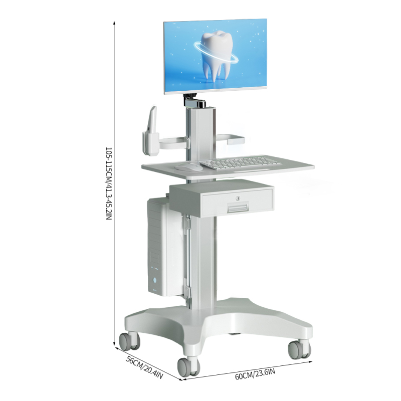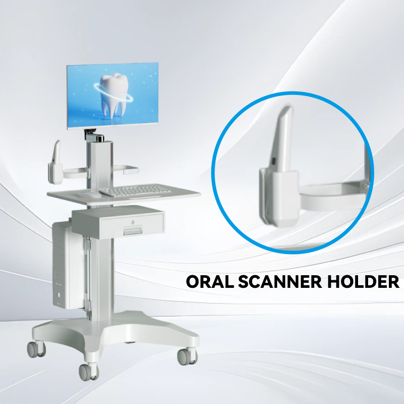 عربة طب الأسنان المتنقلة مع منصة كمبيوتر محمول وحامل ودرج الماسح الضوئي الفموي