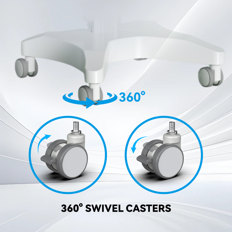 Tتوفر هذه العجلات المتينة حركة سلسة ومتعددة الاتجاهات لتسهيل وضع المعدات. آلية قفل بسيطة تُثبّت العجلات بإحكام في مكانها، مما يضمن ثباتًا تامًا أثناء الإجراءات. مثالية لعربات الطب وطب الأسنان التي تتطلب حركة سلسة وقفلًا آمنًا.