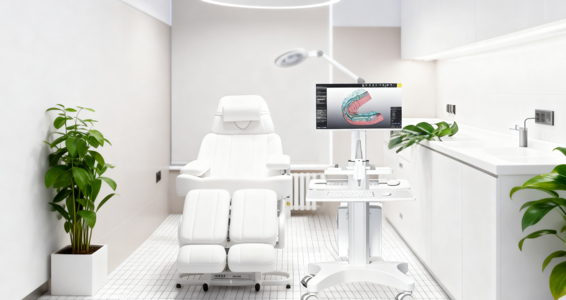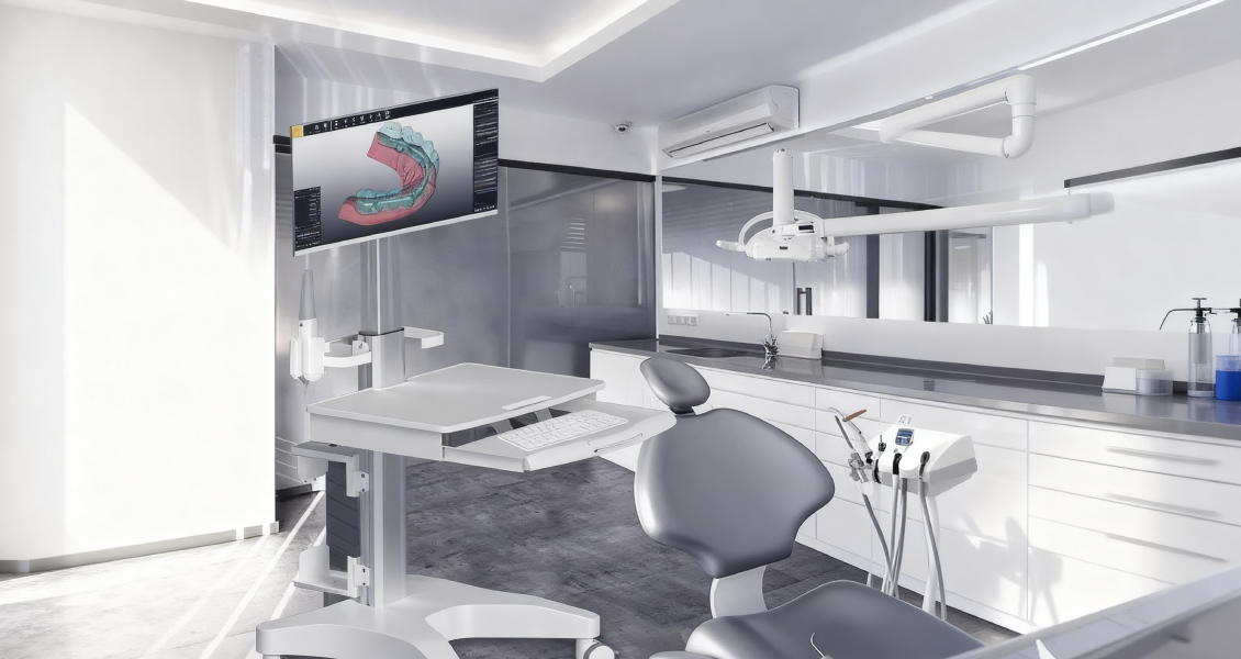 عربة مسح فموي متنقلة مع شاشة قابلة للتعديل