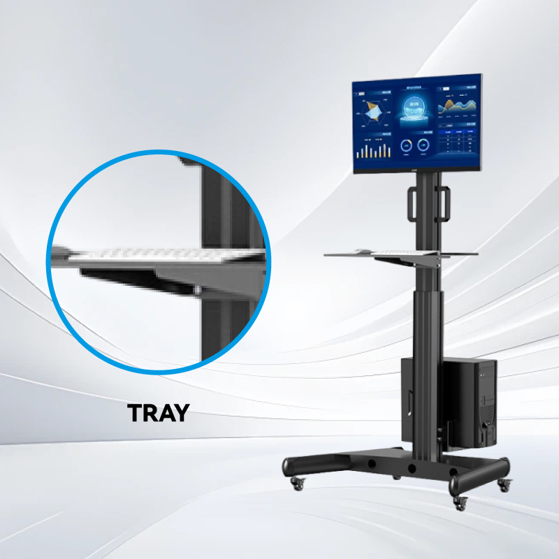 تتميز هذه العربة الطبية بعمود قابل لتعديل الارتفاع، يدعم شاشة رقمية لمراقبة بيانات المرضى بشكل فوري. يتضمن تصميمها الانسيابي لوحة مفاتيح منزلقة وقاعدة متحركة متينة مزودة بعجلات قابلة للقفل لتسهيل التنقل السريري.