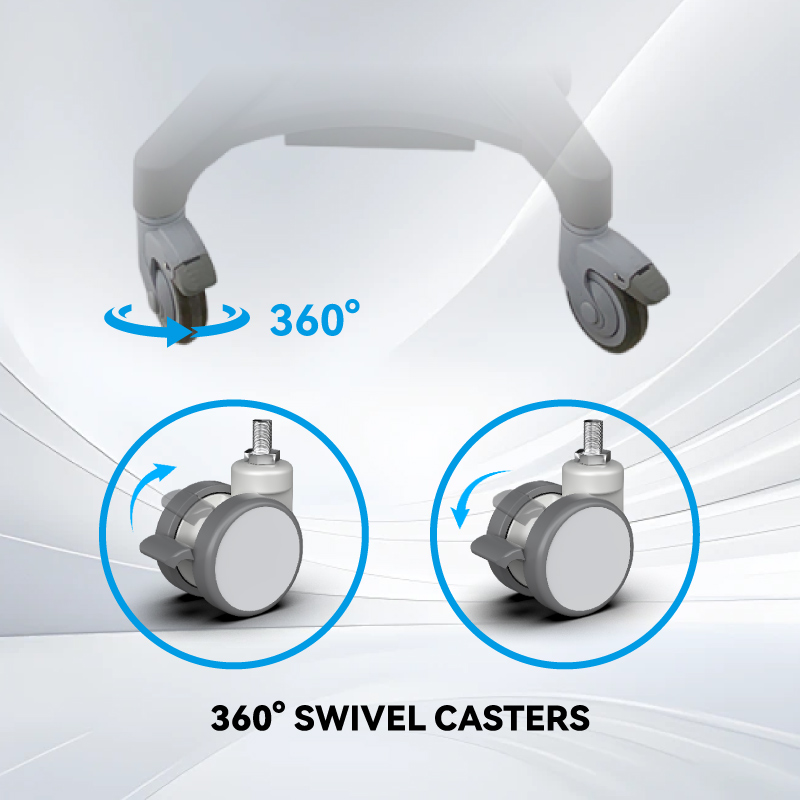 لوحة تثبيت الشاشة هي الواجهة الأساسية بين العربة والشاشة. تصميمها الصليبي، المزود بفتحات براغي VESA متعددة الاتجاهات، يضمن توافقًا واسعًا مع مختلف الشاشات. هيكل ABS المتين يضمن سلامة هيكلها مع إمكانية ضبط الإمالة والدوران والارتفاع بدقة. هذا التصميم الهندسي يُمكّن من وضع الشاشة بشكل مثالي لزوايا مشاهدة مريحة وأداء مستقر أثناء الاستخدام السريري المتنقل. عربة طبية هوائية مزودة بنظام بطارية مدمج.