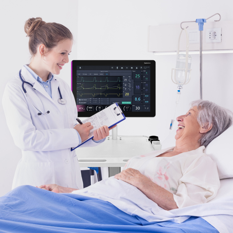 عربة طبية متنقلة فاخرة مزودة بحامل شاشة، وعربة تمريض قابلة لتعديل الارتفاع للمستشفيات والعيادات